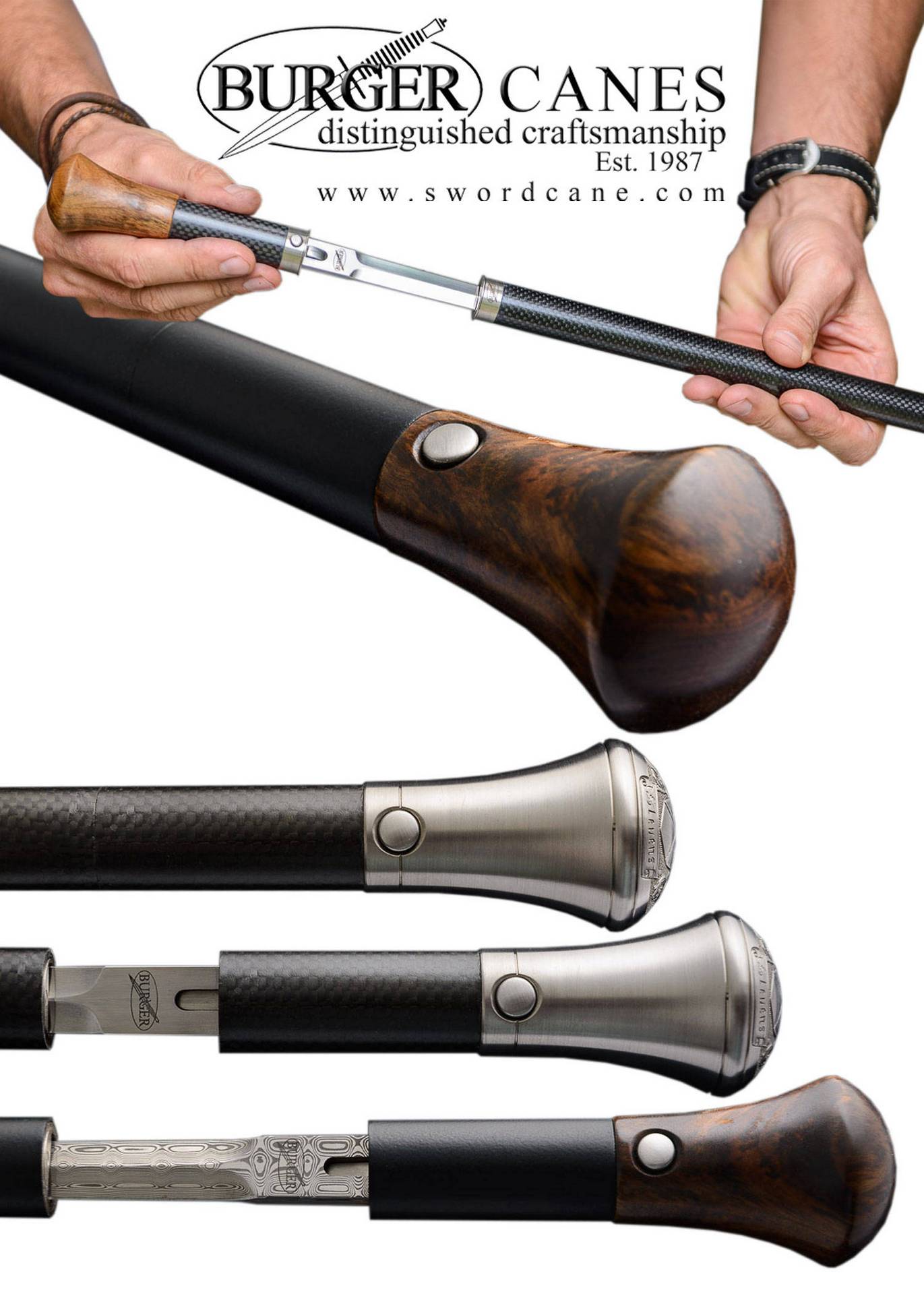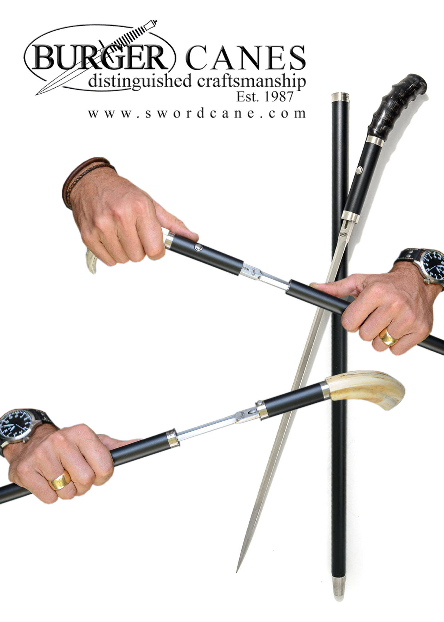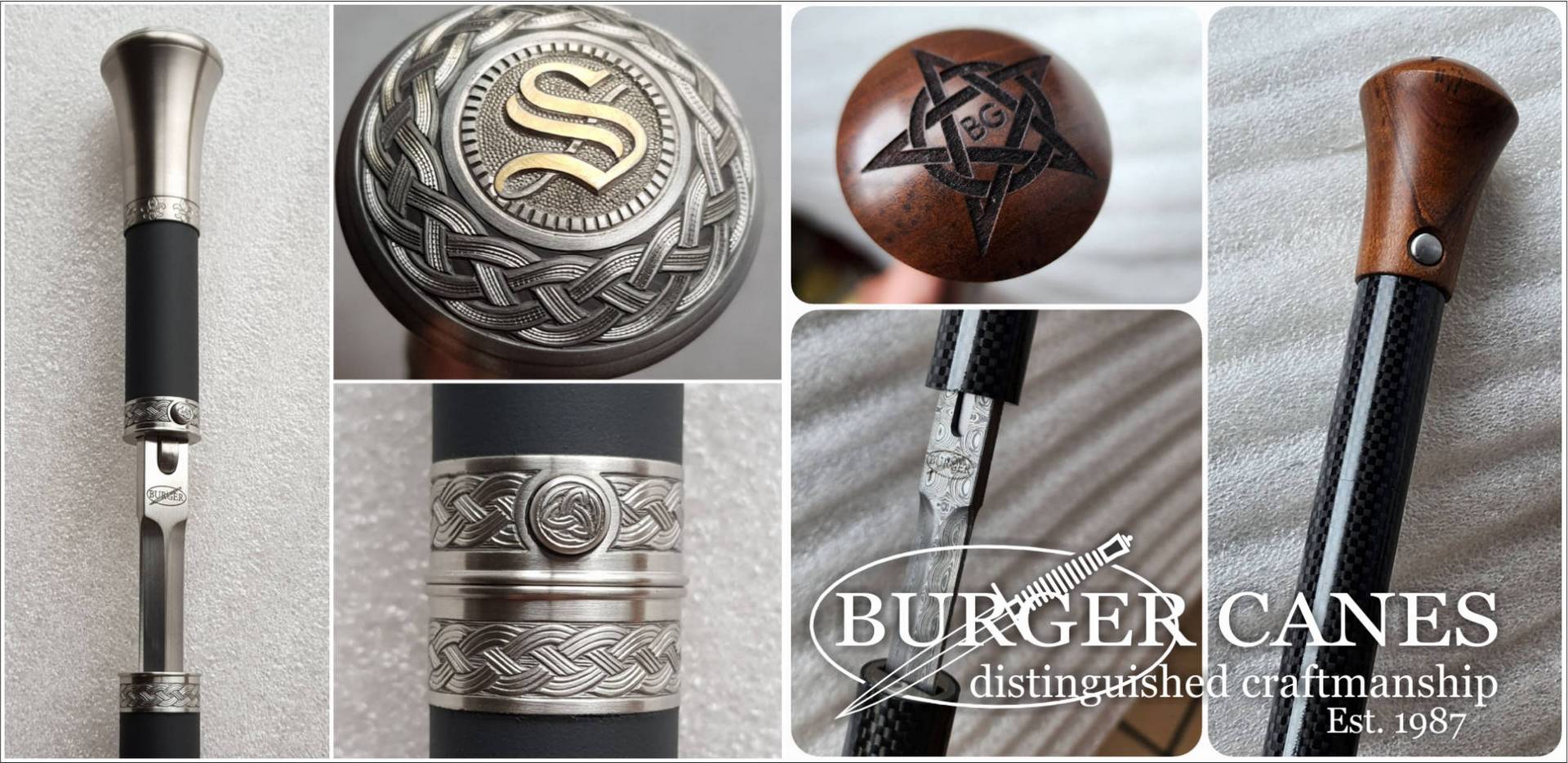 Burger Custom Canes is proud to introduce you to our bespoke range of quality hand crafted Sword Canes, Custom Canes, Family Heirloom Collector Canes, Hiking Staff, Country Cane and Standard Walking Cane models. Each individual cane is hand built to be a strong, light weight walking cane designed for every day use. Using only the finest grade steels, modern composite materials and indigenous African products. Combined with old world and distinguished craftsmanship, attention to detail, fit and finish. Resulting in a uniquely personalized cane that is a pleasure to use, admire and own. Most people just refer to our work and range as “Functional Art”