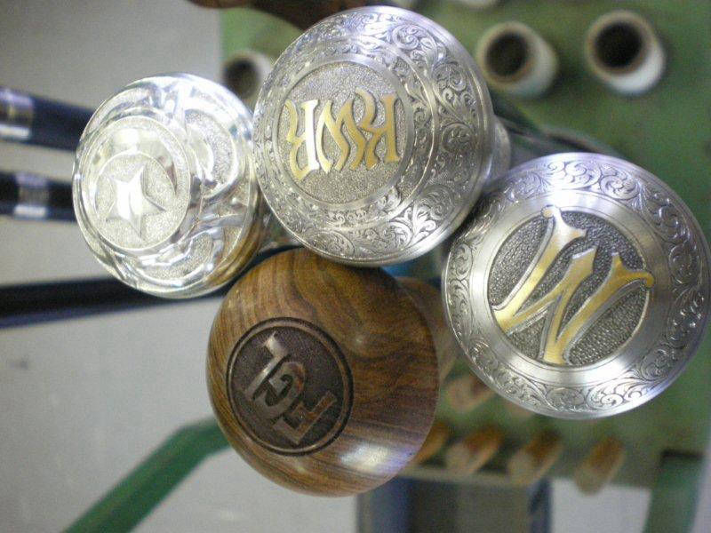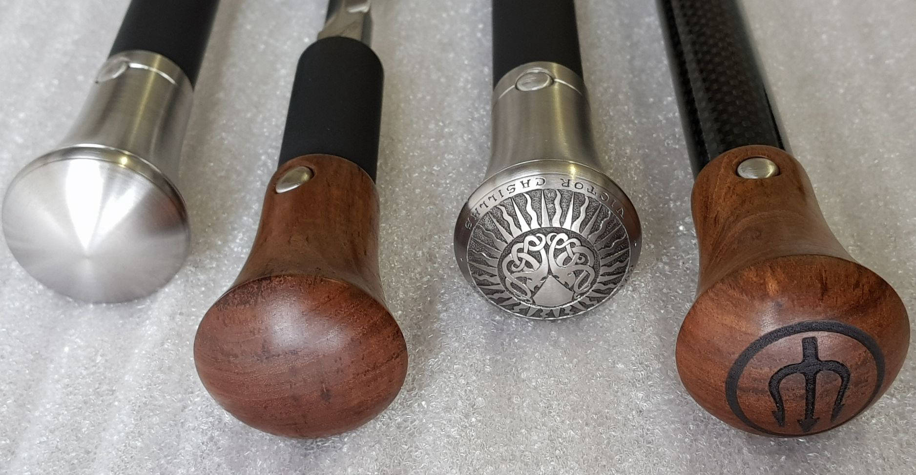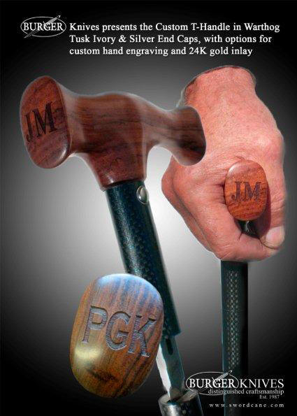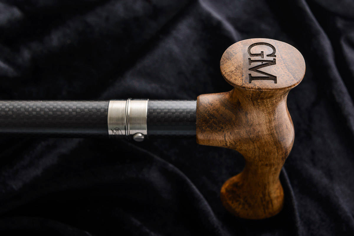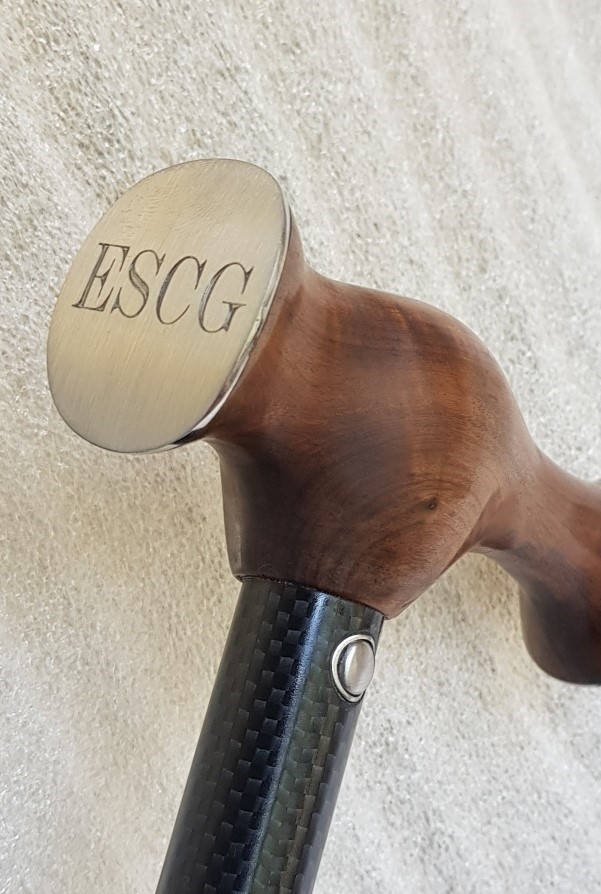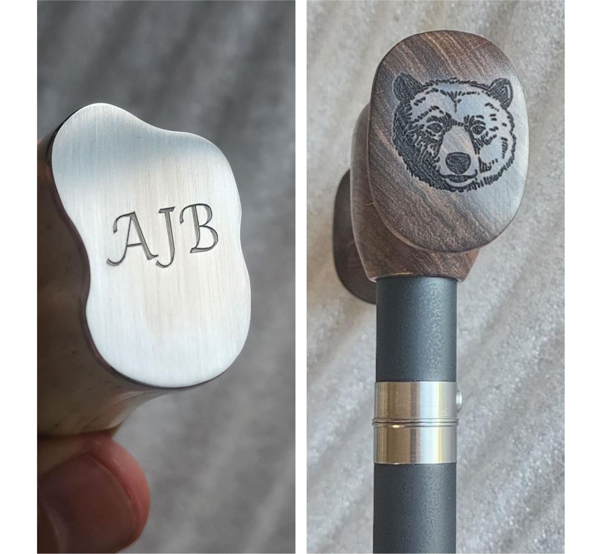 Welcome to the bespoke world of truly customized and personalized handles. Burger Custom Canes offers a range of unique custom handles that can be personalized with initials or logo's with custom engraving. This style of custom work starts at $180- for simple initials or logo engraved on the dome of our popular Turned Tamboti handle or end cap of the Tee handle.