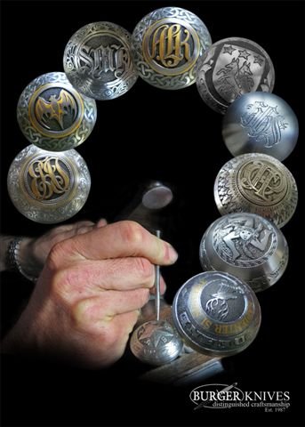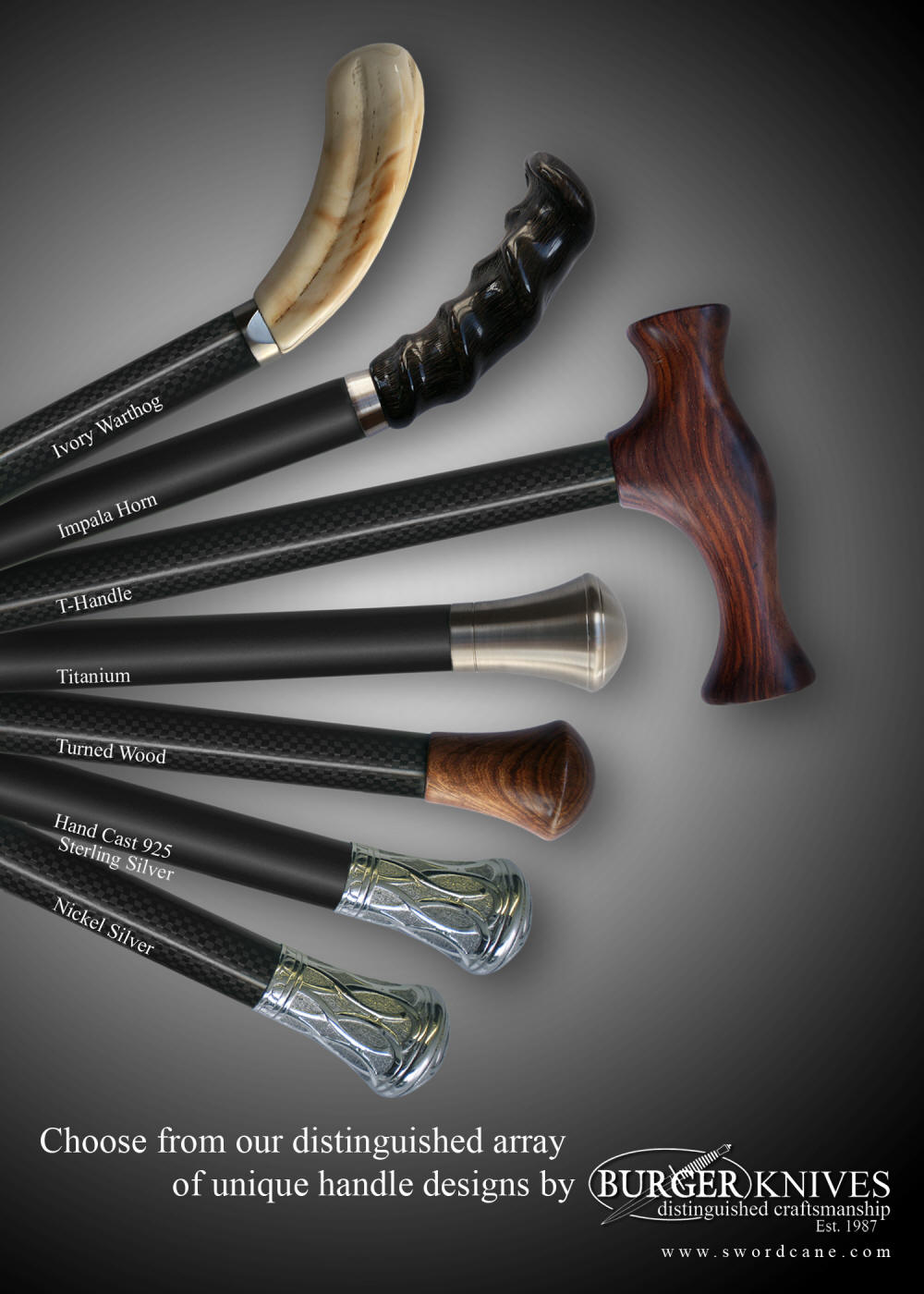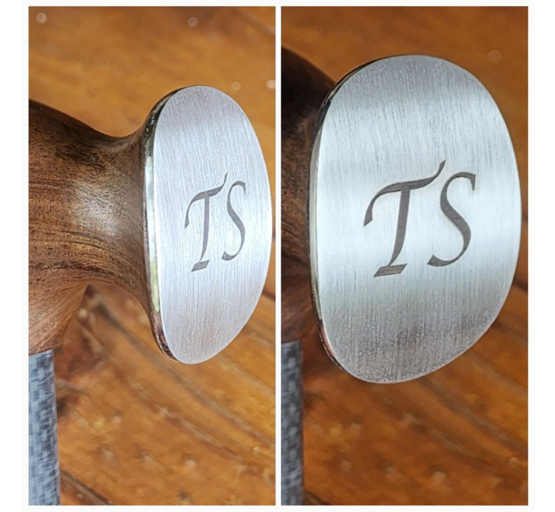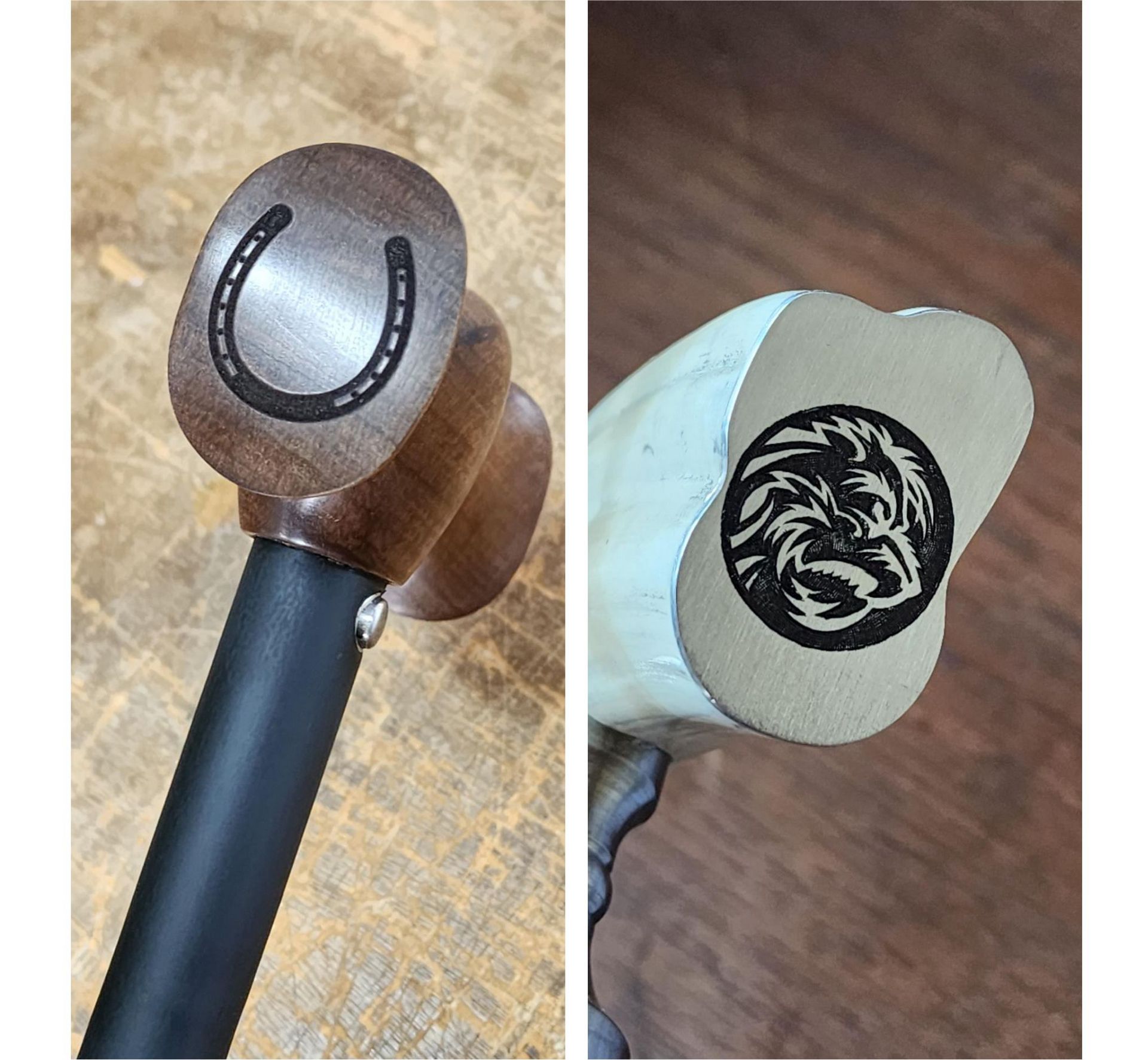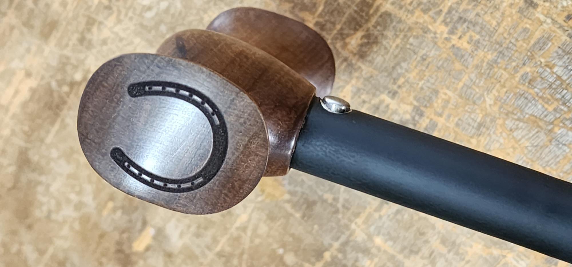 Welcome to the bespoke world of truly customized and personalized handles. Burger Custom Canes offers a range of unique custom handles that can be personalized with initials or logo's with custom engraving. This style of custom work starts at $180- for simple initials or logo engraved on the dome of our popular Turned Tamboti handle or end cap of the Tee handle.