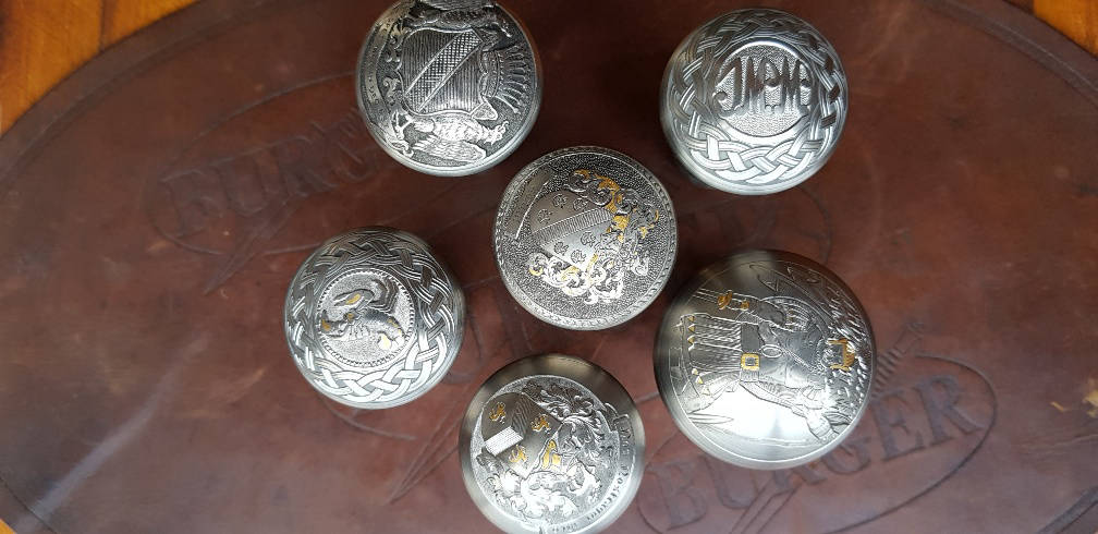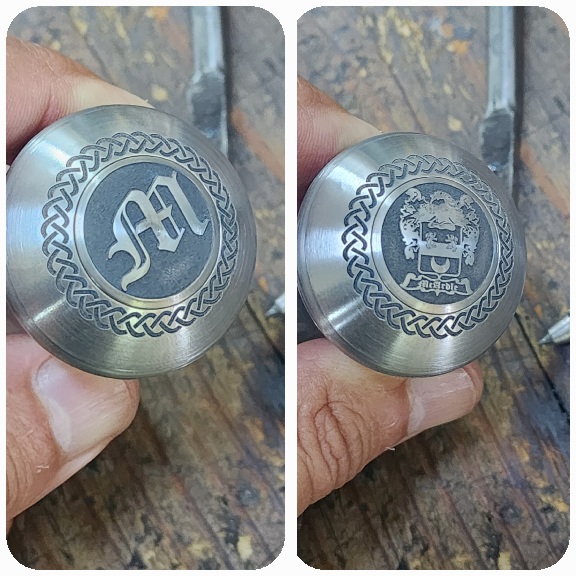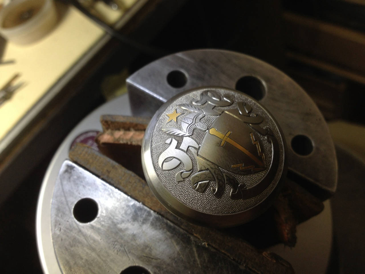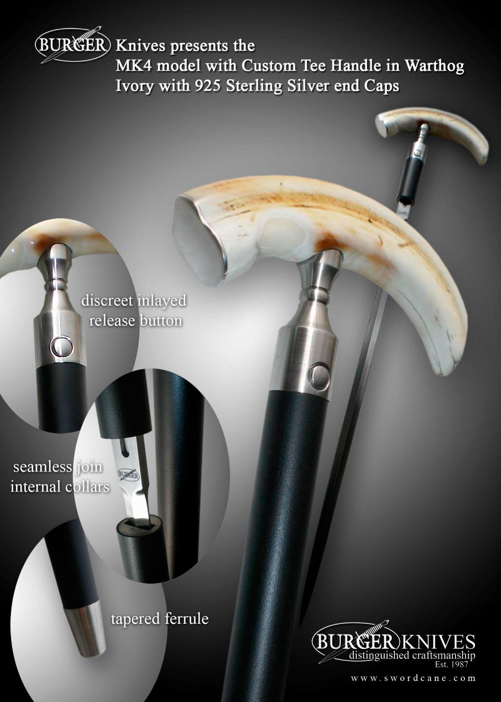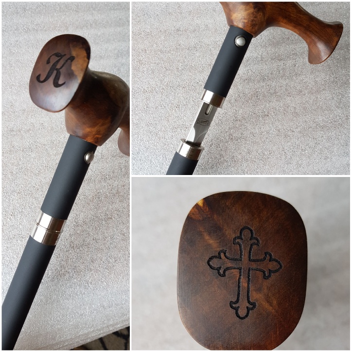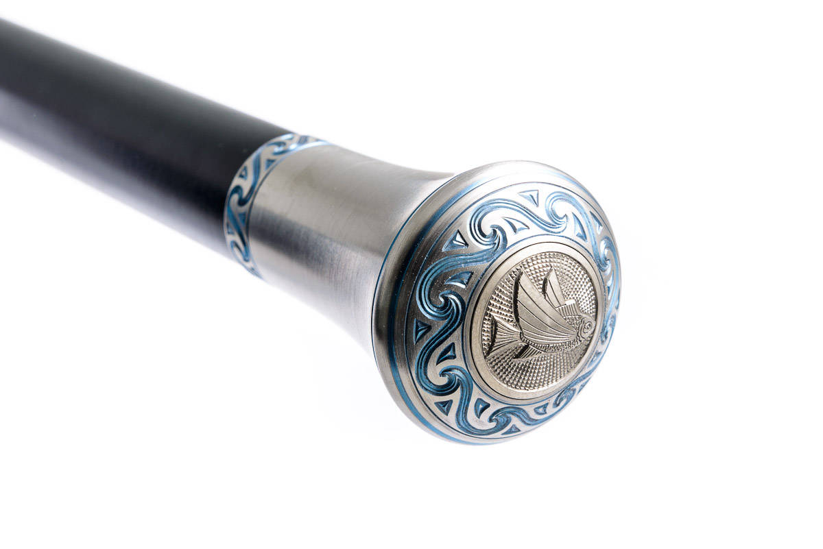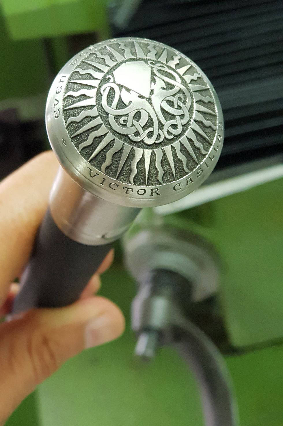 This level of custom handle engraving is normally combined with matching custom engraving on the external components of the sword cane, namely the release button, collars and both sides of the blade with option for 24K gold inlay. Transforming your order into a truly “functional art” cane and family heirloom.