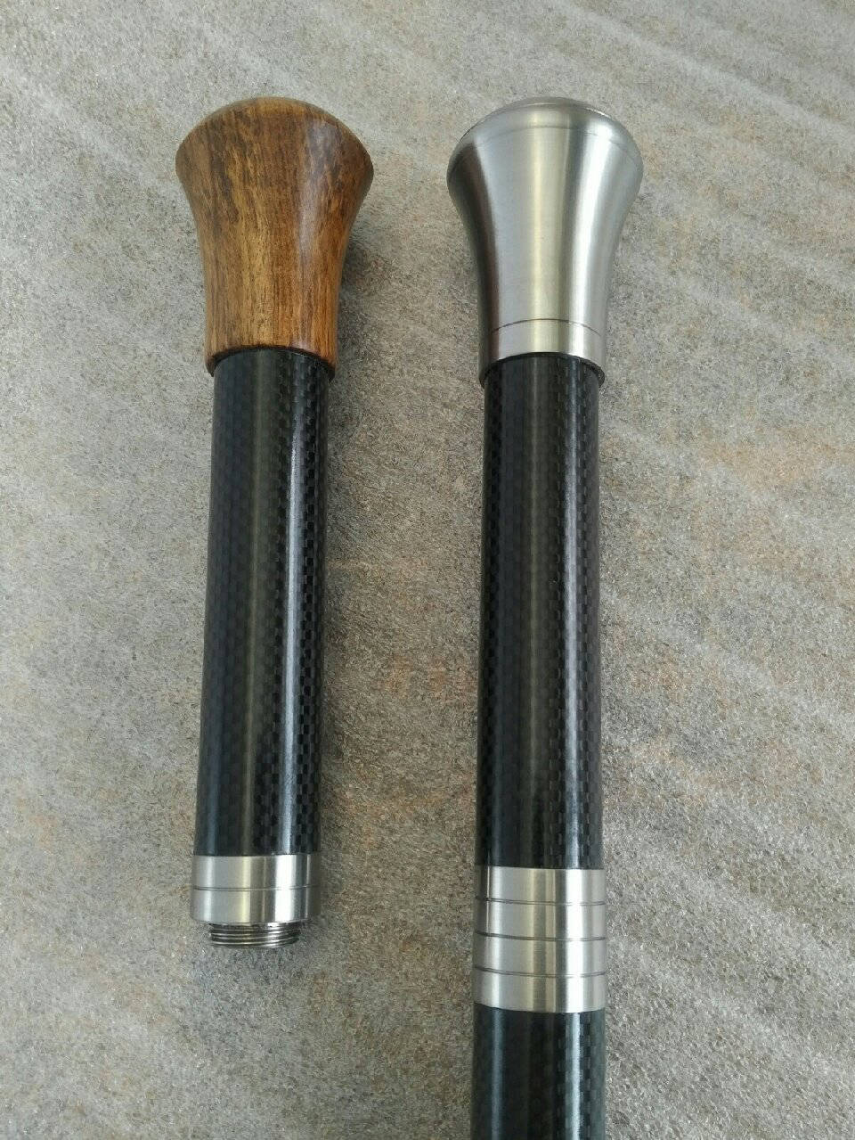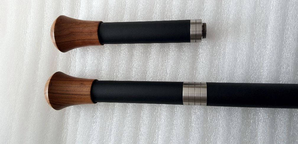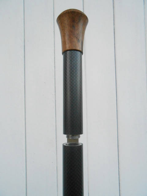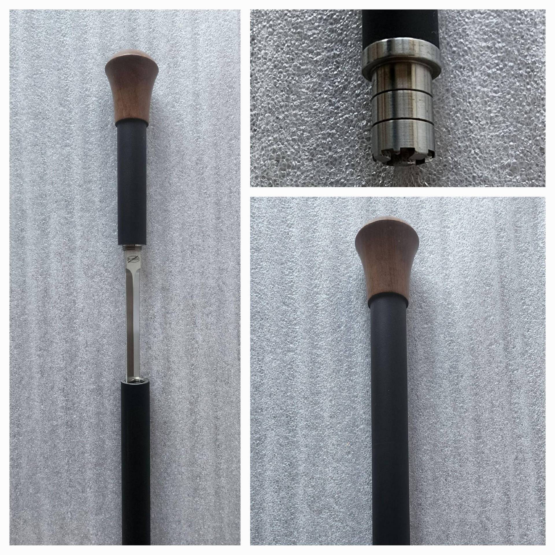 Burger Custom Canes is proud to add the "Country Cane Model" design to their quality range of world renowned sword canes. This unique design is built in the same tradition of distinguished craftsmanship, with the same beautiful rapier style blade as found in the MK2, 3 & 4 sword cane models. Built along similar lines to the very popular Hiking Staff Model the Country Cane incorporates the larger diameter (26mm) carbon composite shaft in matt black (woven carbon option adds $110-) and multi surface ferrule (tip). The County Cane comes with our very popular, versatile and comfortable "Turned Tamboti" handle. With the unique short thread locking action collars in 303 s/s allowing the blade to extracted with two and a quarter turns of the handle offering very secure, discreet, rugged and rattle free functionality to this distinguished and hardworking Country Cane design.