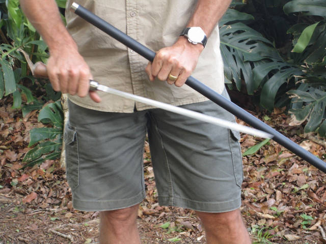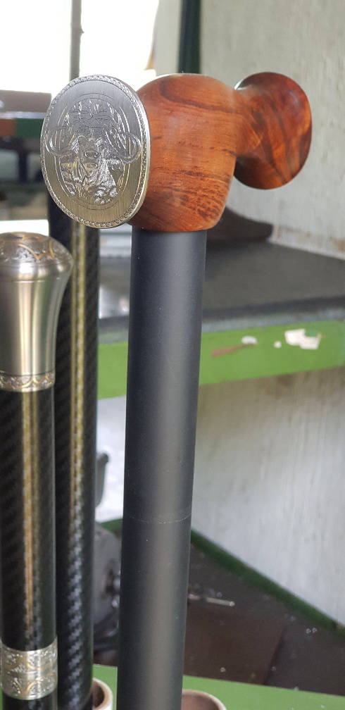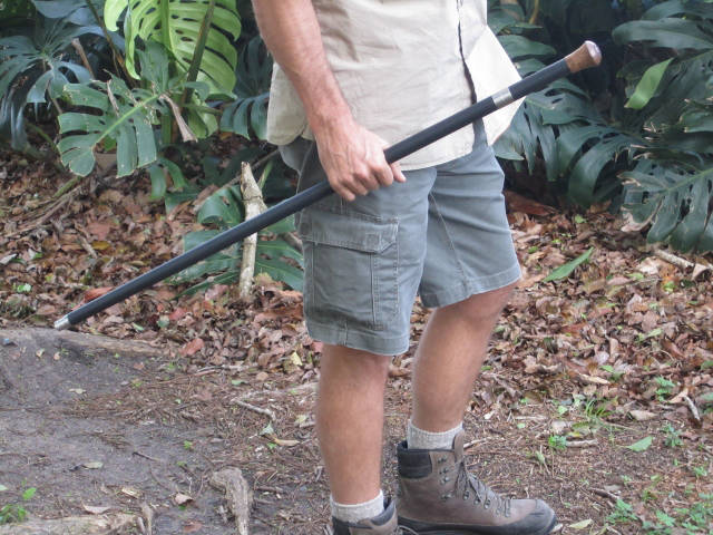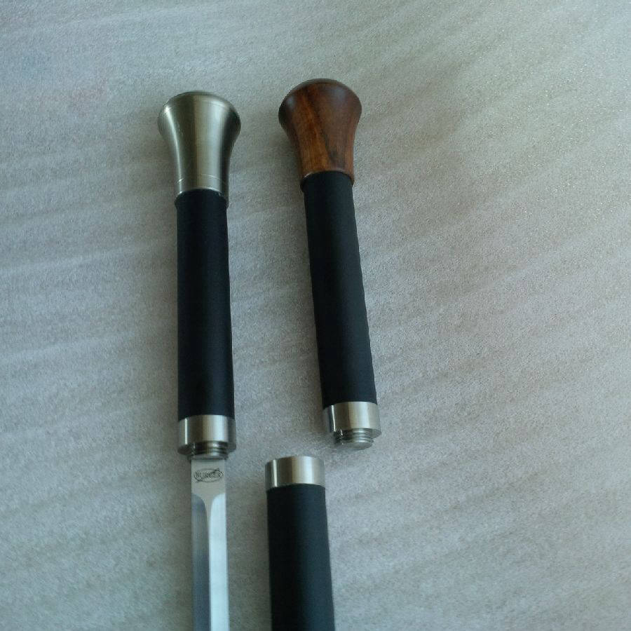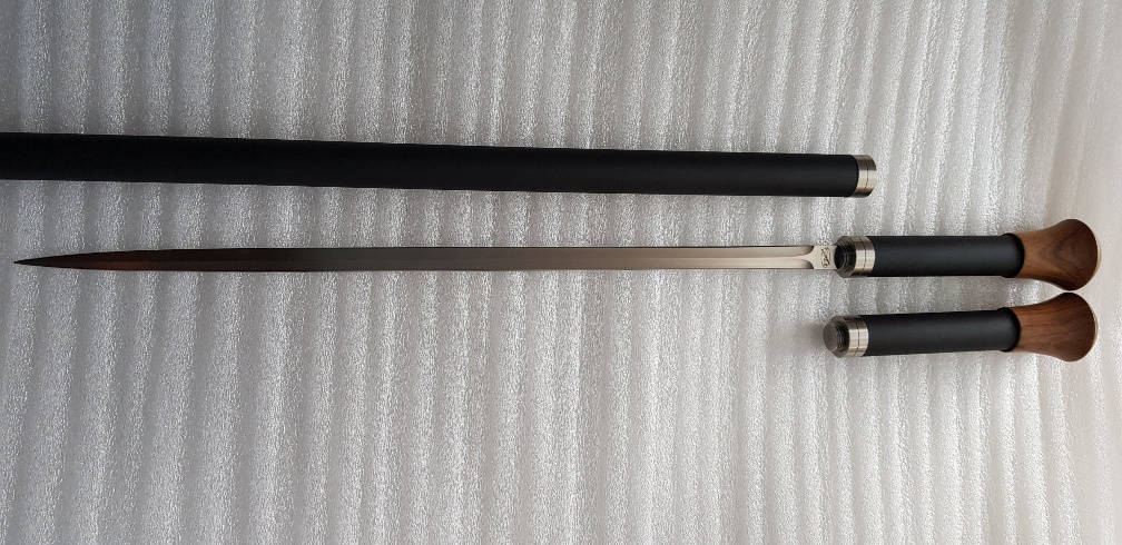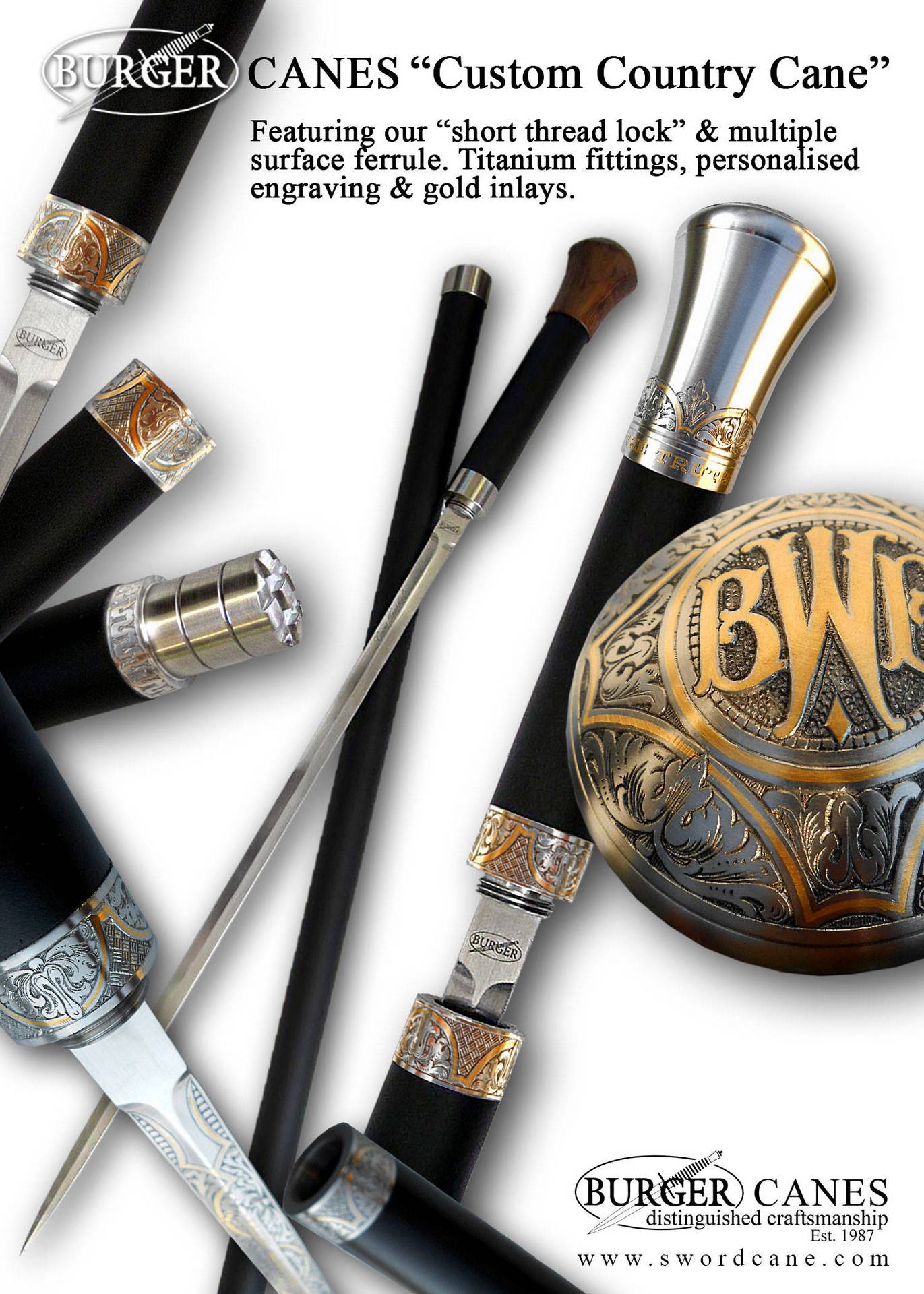Burger Custom Canes is proud to add the "Country Cane Model" design to their quality range of world renowned sword canes. This unique design is built in the same tradition of distinguished craftsmanship, with the same beautiful rapier style blade as found in the MK2, 3 & 4 sword cane models. Built along similar lines to the very popular Hiking Staff Model the Country Cane incorporates the larger diameter (26mm) carbon composite shaft in matt black (woven carbon option adds $110-) and multi surface ferrule (tip). The County Cane comes with our very popular, versatile and comfortable "Turned Tamboti" handle. With the unique short thread locking action collars in 303 s/s allowing the blade to extracted with two and a quarter turns of the handle offering very secure, discreet, rugged and rattle free functionality to this distinguished and hardworking Country Cane design.