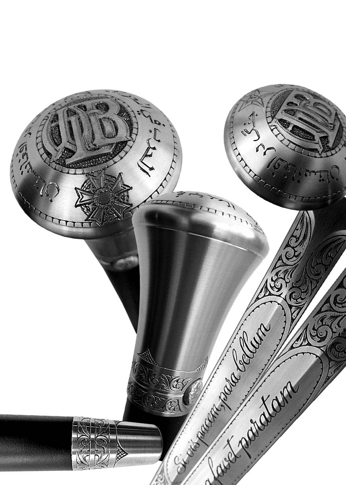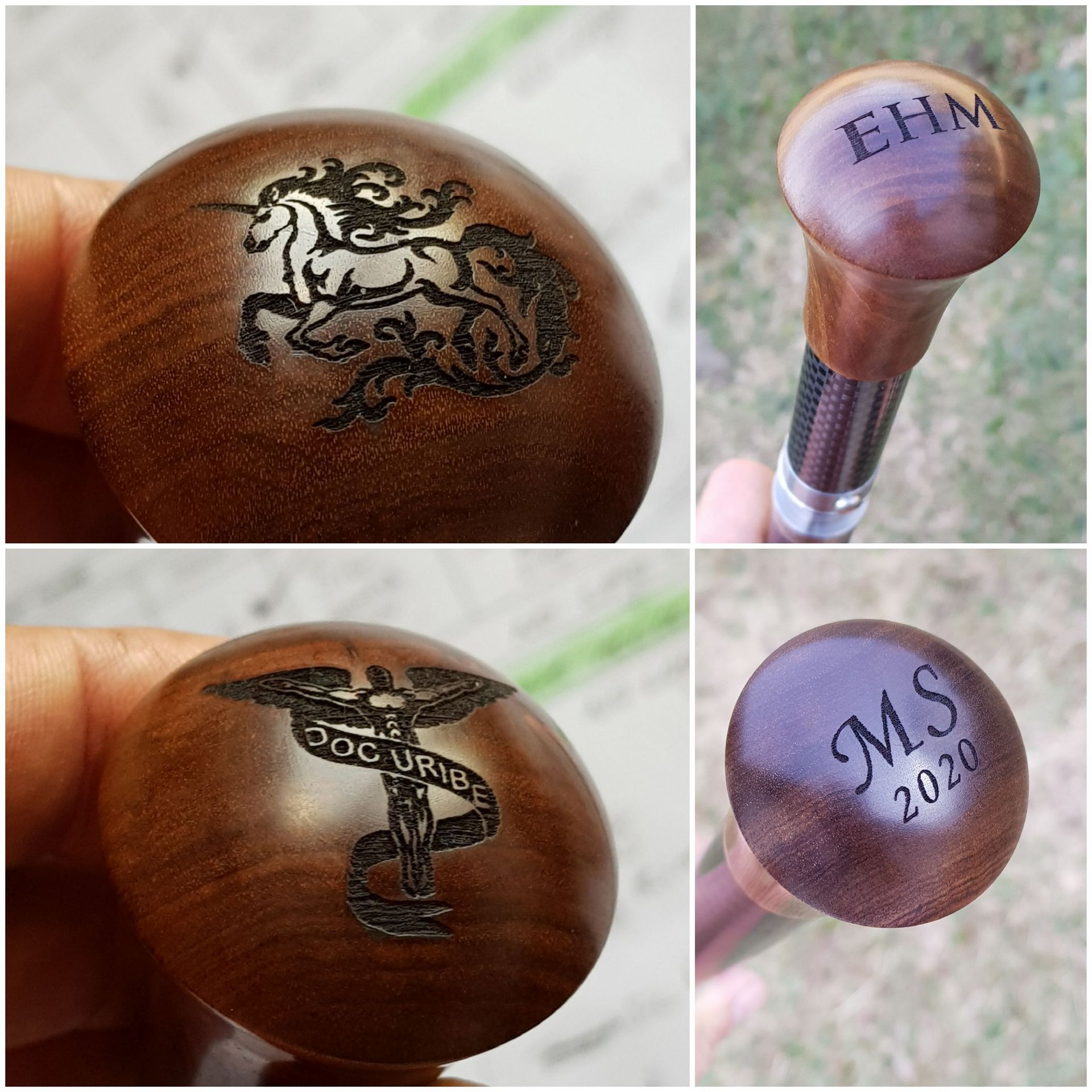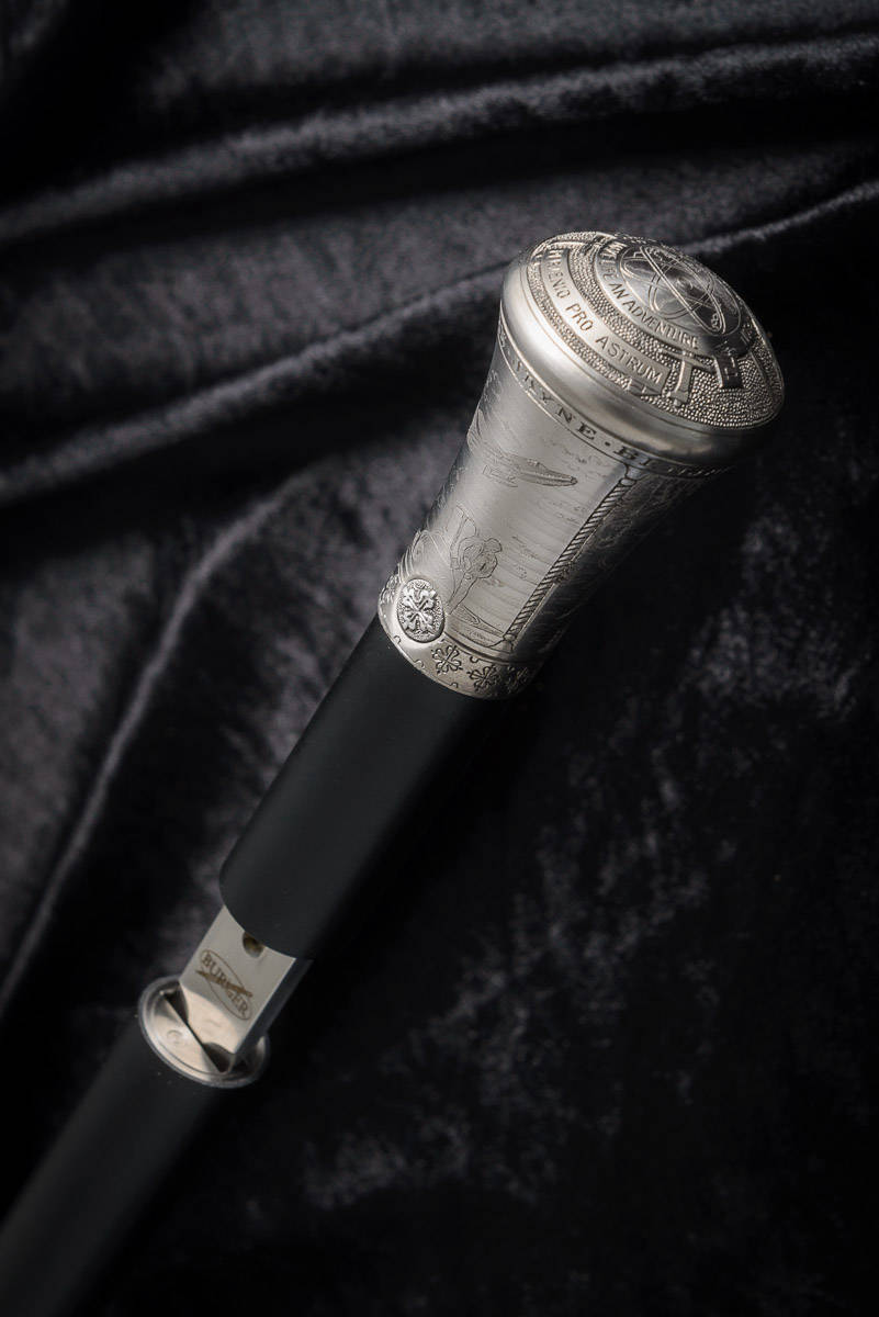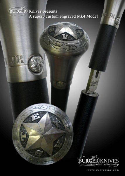 We have many different styles and options for personalizing our range of quality canes as can be seen in my file photos on this site. With over 65 years of combined experience in hand engraving, design, layout and building of the world’s finest bespoke canes I will guide and advice you on the best way forward, once we have established a basic design concept, and assure you of only the best advice. Please understand that each Custom Cane is hand built from scratch. This level of old world craftsmanship takes time! The average build time for a "Full House" best grade hand engraved custom cane is one to four months pending engraving details and option for 24K gold inlay. Work only starts once we have finalized all details and the 50% deposit has been secured. I use only the finest hand selected components for these bespoke custom canes with many hours of dedication to the finest details and attention to fit and finishes making your BURGER CUSTOM CANE a truly UNIQUE ONE OFF BESPOKE CANE and Family heirloom. As many clients have remarked…..simply- ”functional art”
