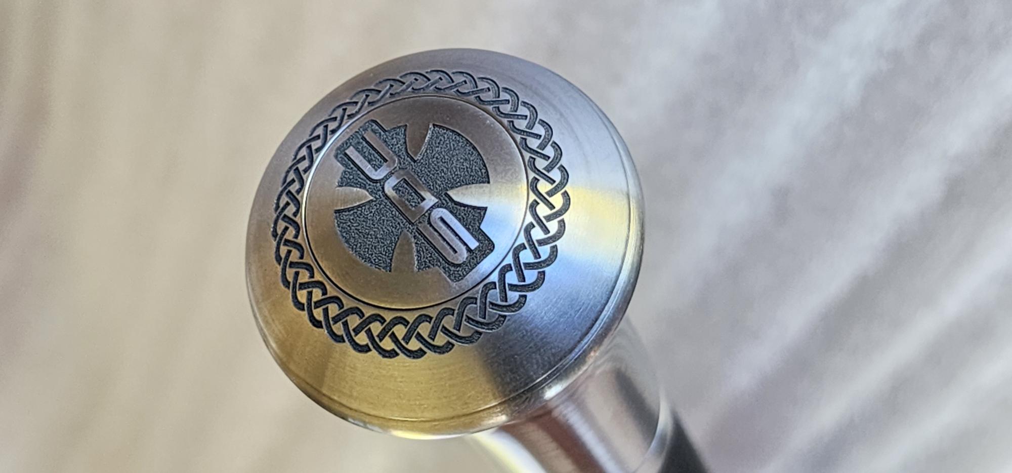 our custom Tee handles with the s/s end caps. Engraved in a semi deep relief