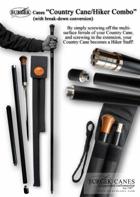 Essentially a big bother to the popular, tough and discreet Country Cane model it is built in the same tradition of distinguished craftsmanship and attention to detail we are renowned for. And incorporating the rugged and seamless break down conversion and carry case a simple hiking/walking accessory to transport to the head of any trail.