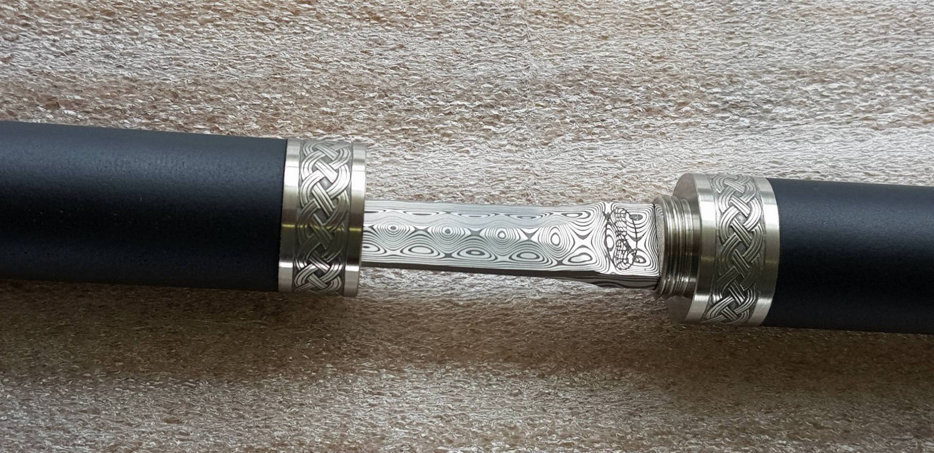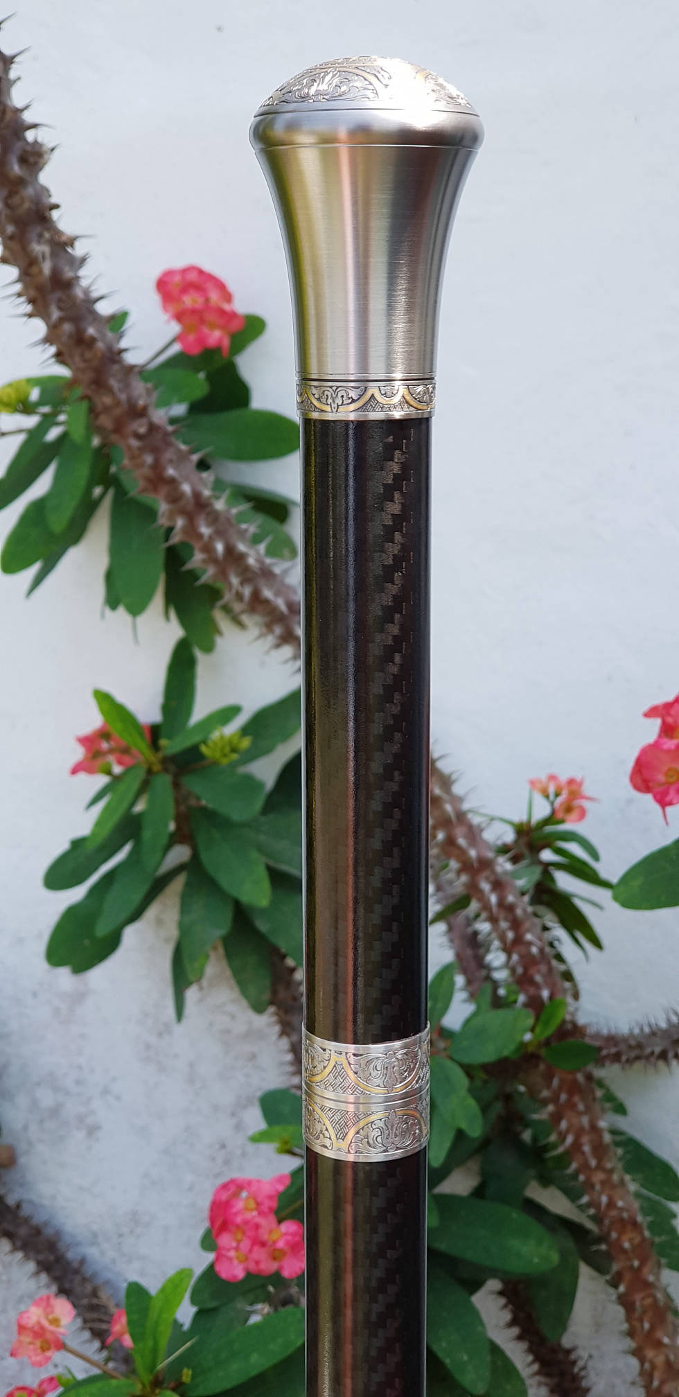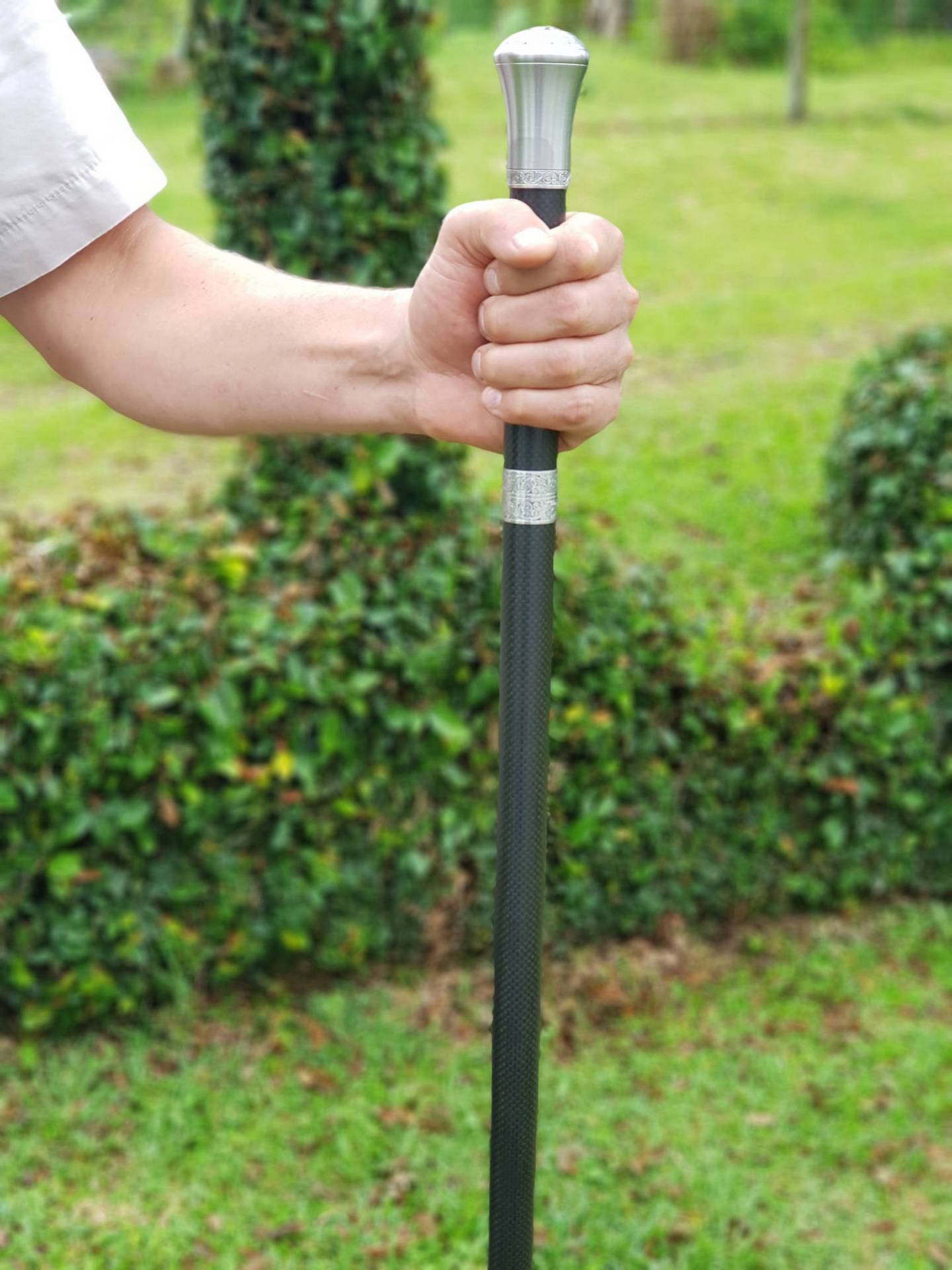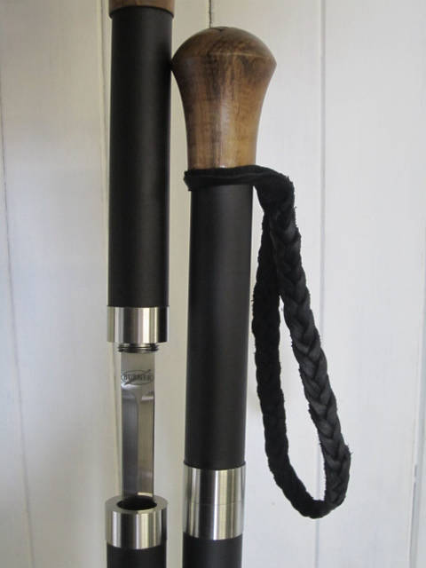 Incorporating the same beautiful rapier style double edged blade as found in the MK2 & Country Cane sword cane range. The Hiker Staff incorporates the larger diameter (26mm) carbon composite shaft in matt black or woven carbon finish (woven carbon option adds $110-) and with a multi surface ferrule (tip). The standard Hiker Staff comes with our very popular, Turned Tamboti handle. And with the unique short thread locking action collars in 303 s/s allowing the blade to be extracted with two and a quarter quick turns of the handle. Offering a very secure, discreet, rugged and rattle free functionality to this hardworking Hiker Staff design. The perfect companion when you find yourself OFF the beaten track!!